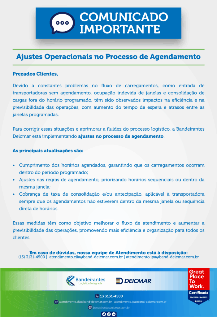 Bandeirantes Deicmar Logística Integrada uses cookies and other similar technologies to improve your experience, in accordance with our Data Privacy notice and, by continuing to browse, you agree to these conditions. Data Privacy Notice.