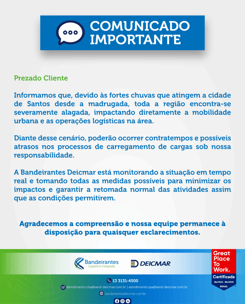 Bandeirantes Deicmar Logística Integrada uses cookies and other similar technologies to improve your experience, in accordance with our Data Privacy notice and, by continuing to browse, you agree to these conditions. Data Privacy Notice.