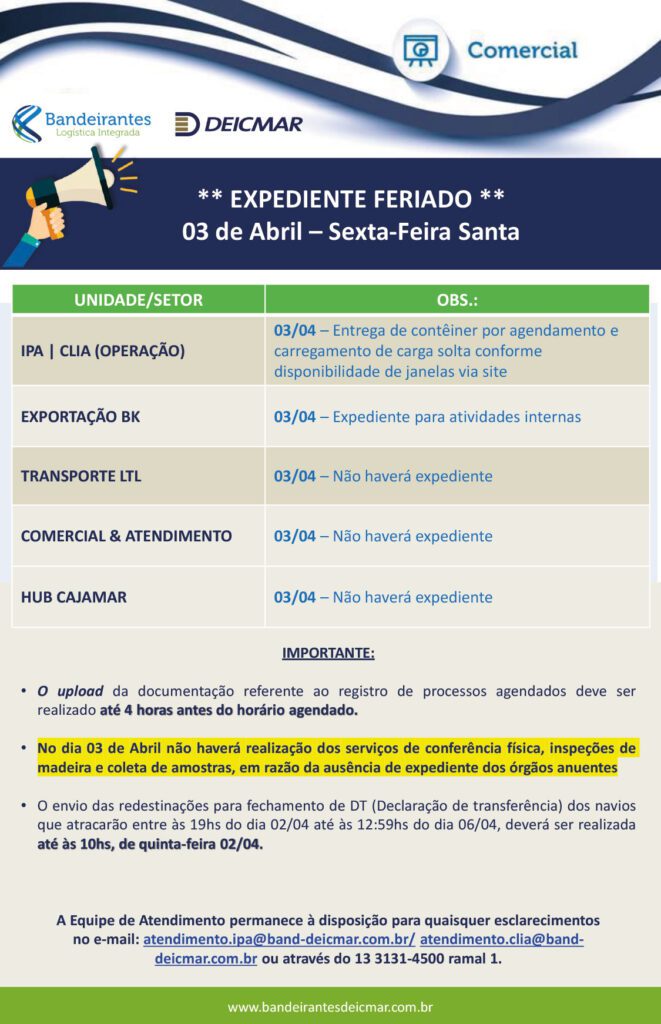 EXPEDIENTE FERIADO - 03/04 - SEXTA-FEIRA SANTA