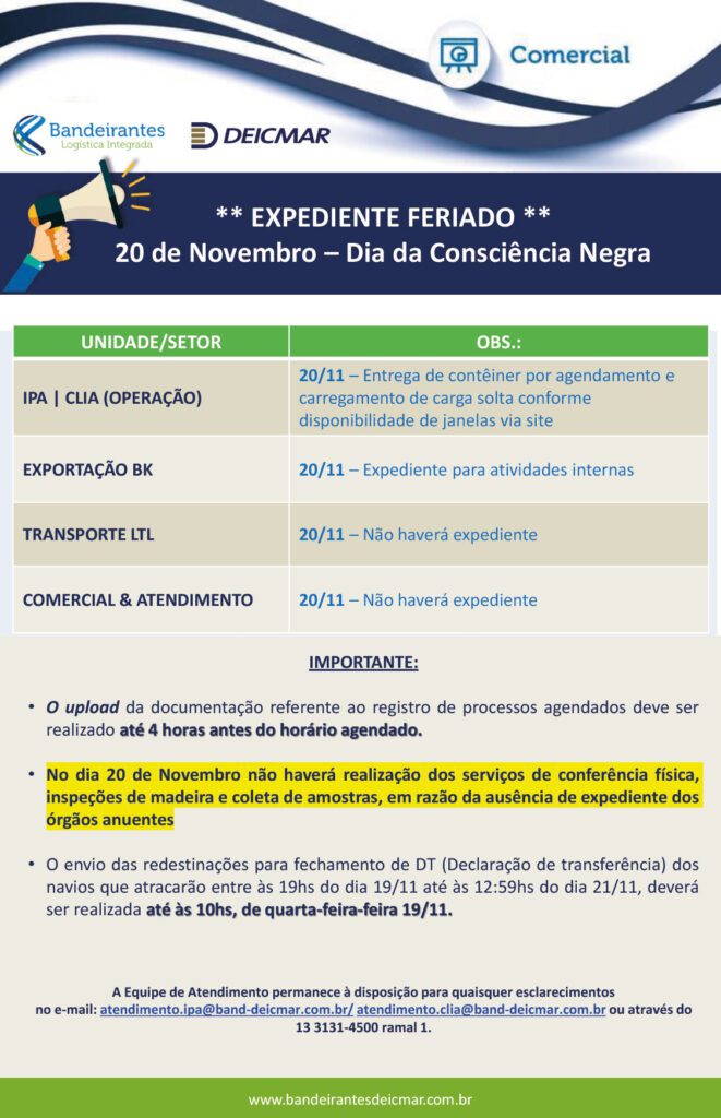 : EXPEDIENTE FERIADO - 20/11 - CONSCIÊNCIA NEGRA :