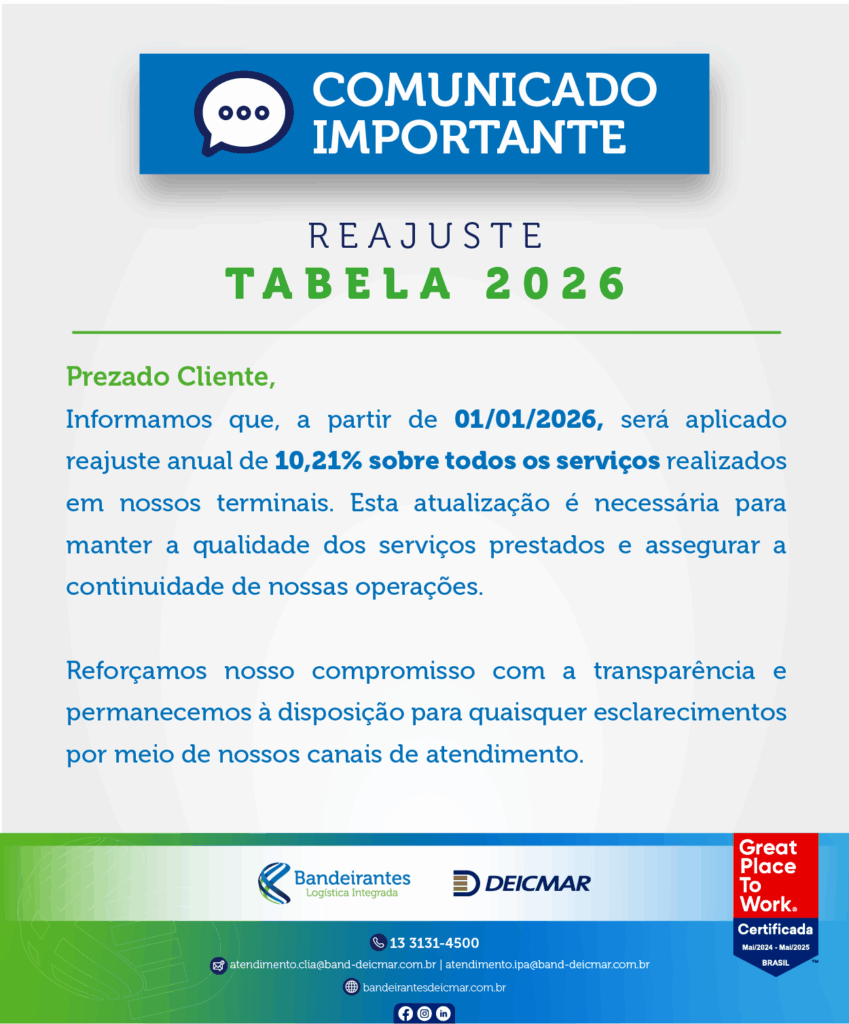 Bandeirantes Deicmar Logística Integrada uses cookies and other similar technologies to improve your experience, in accordance with our Data Privacy notice and, by continuing to browse, you agree to these conditions. Data Privacy Notice.